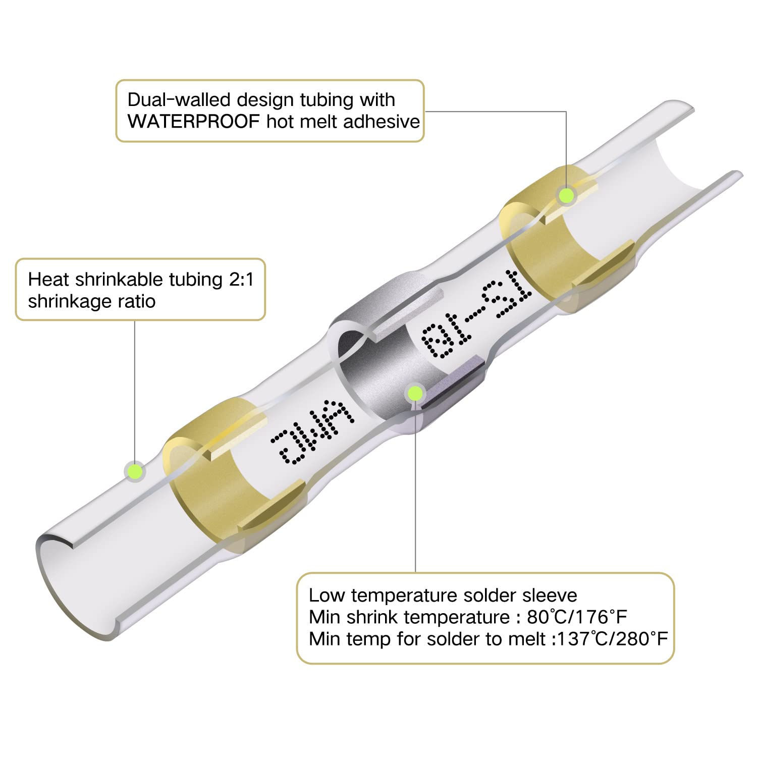 350 Pcs Solder Seal Wire Connectors Heat Shrink Butt Connectors Kit Marine Waterproof Wiring Electrical Cable Splice Terminals for Boat Automotive RV Trailer