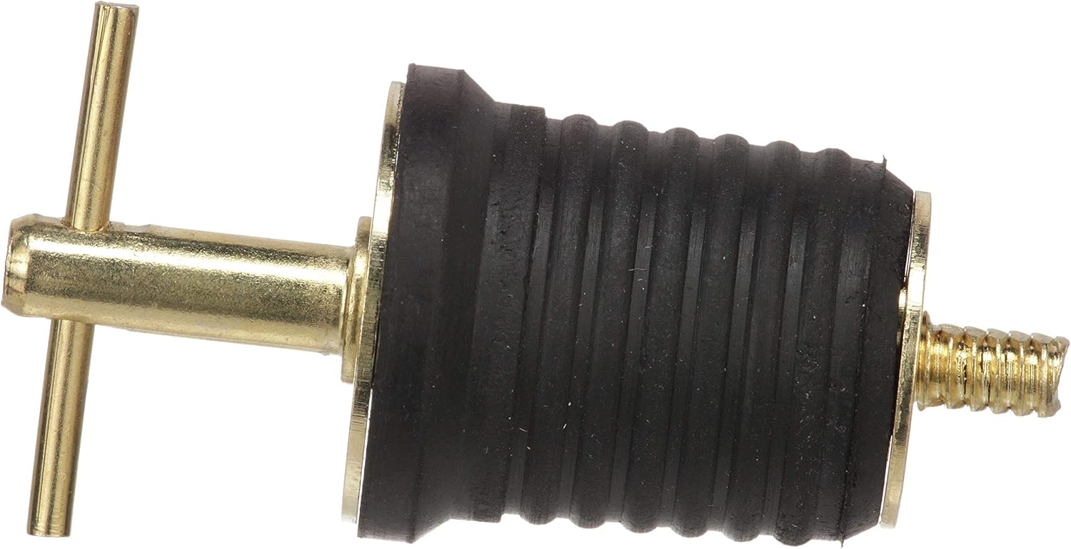 Attwood 11587-4 T-Handle Drain Plug, for 1-Inch-Diameter Drains, Locks in Place, Brass-Plated Handle