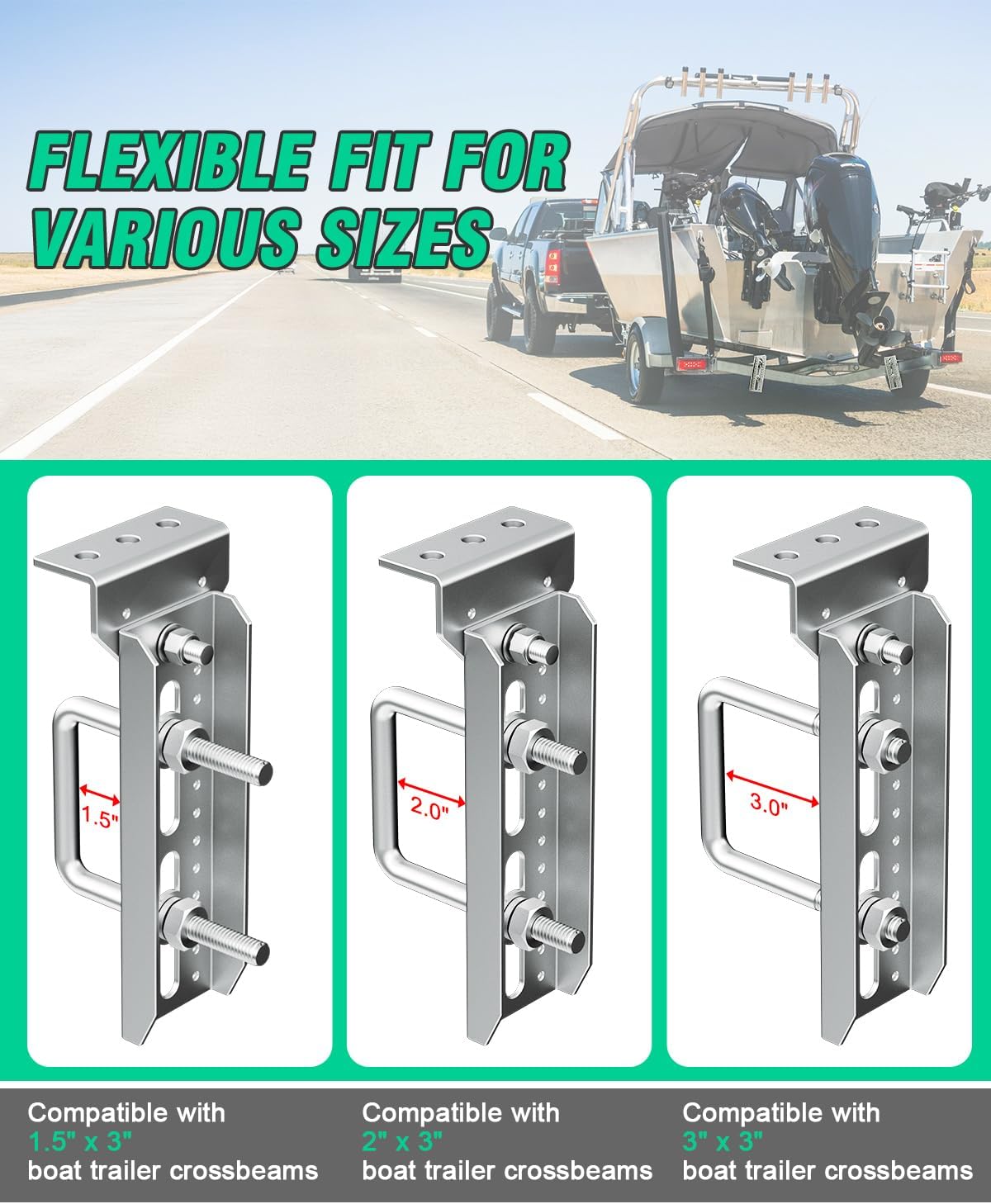 Heavy Duty 8" Boat Trailer Bunk Brackets, 4 PCS Galvanized Swivel Top Bunk Bracket Kit for 1.5" x 3", 2" x 3", 3" x 3" Boat Trailer Crossmember