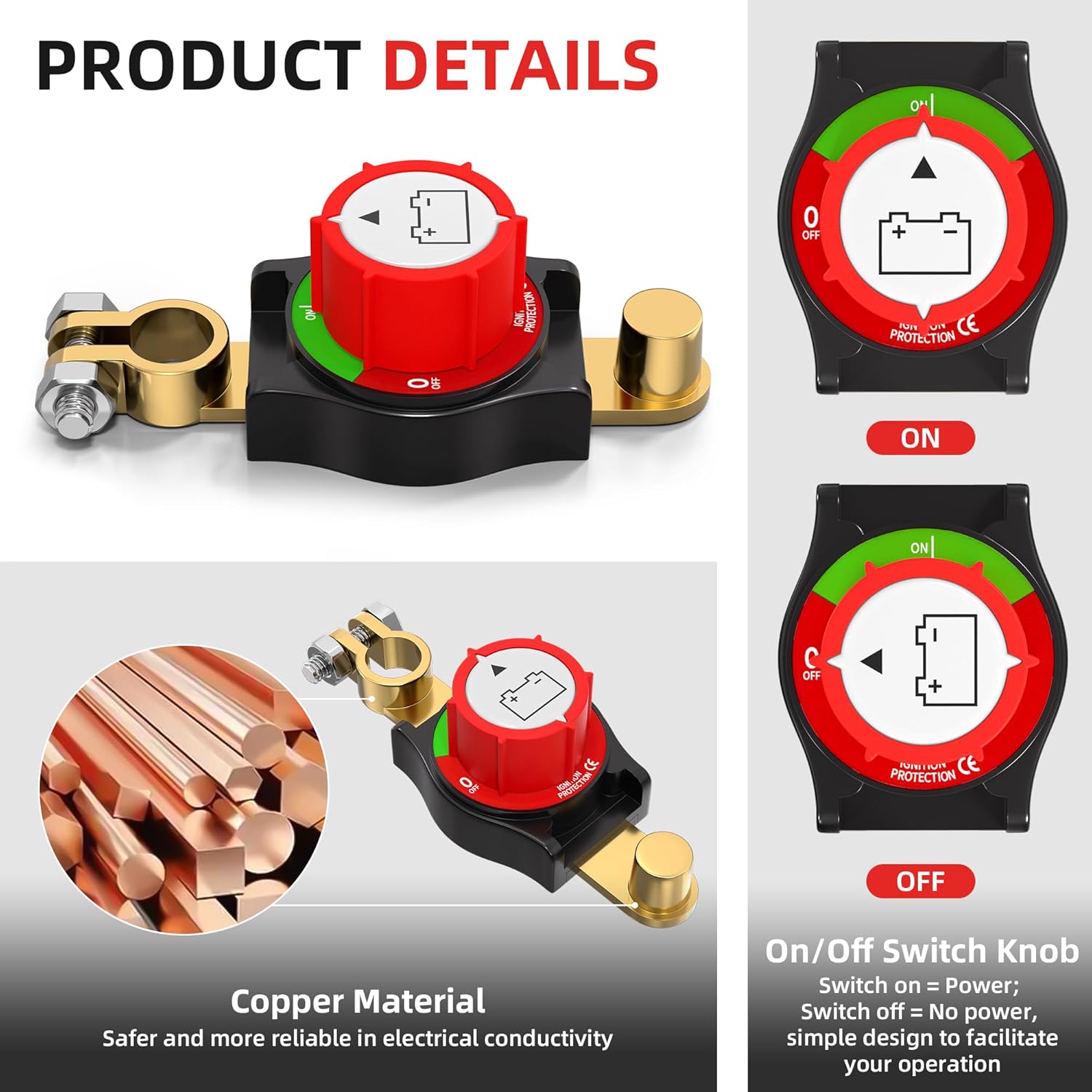 Joinfworld Top Post Battery Disconnect Switch 12V-48V Battery Kill Switch Negative On/Off Battery Switch for Cars, Vehicles, RVs and Boats