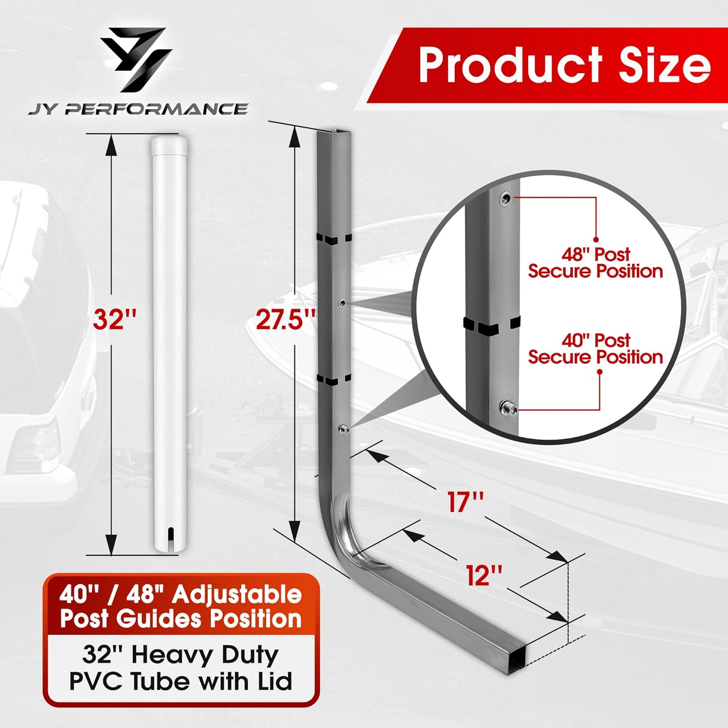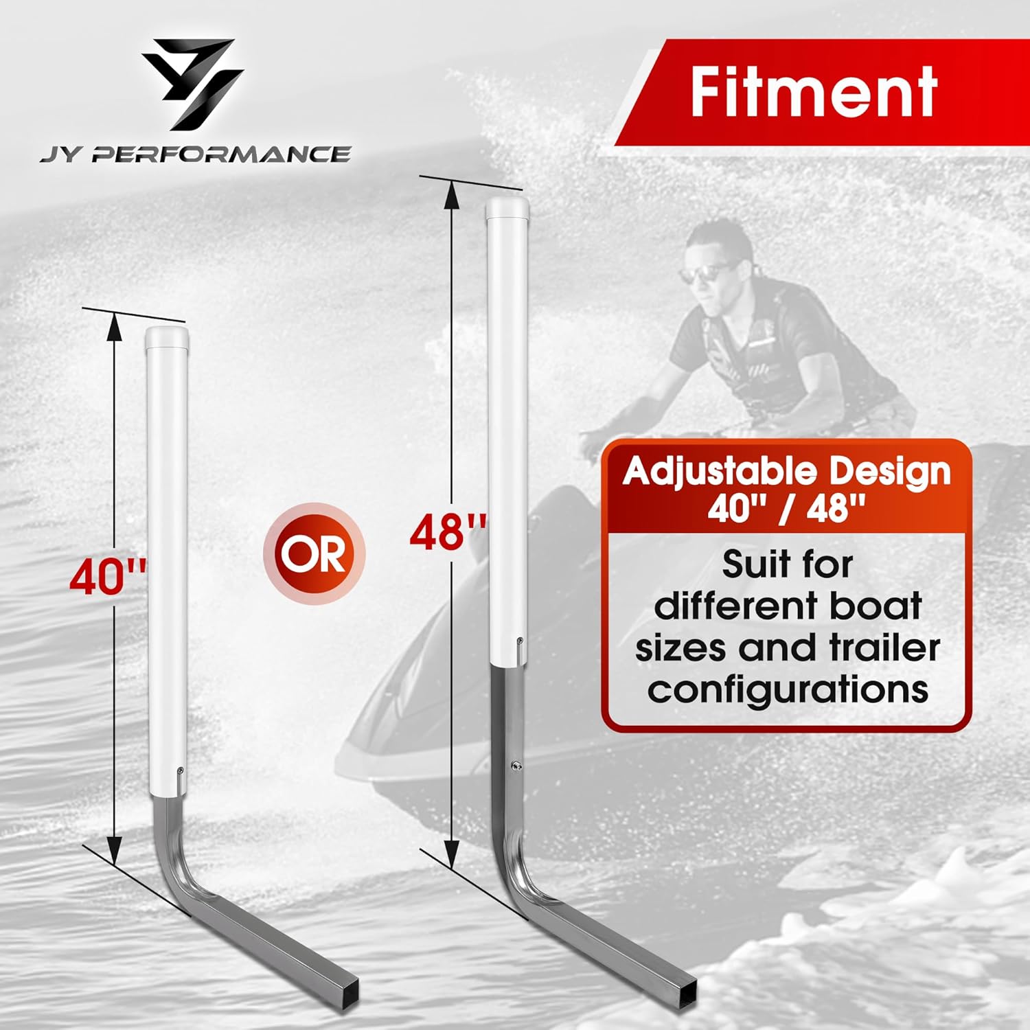 JY PERFORMANCE Boat Trailer Guide-ons, 40"/48" Adjustable, Rustproof Electro-Galvanized Steel Trailer Guide ons, Trailer Guides with White PVC Pipes, for Ski Boat, Fishing Boat, Sailboat Trailer 2PCS