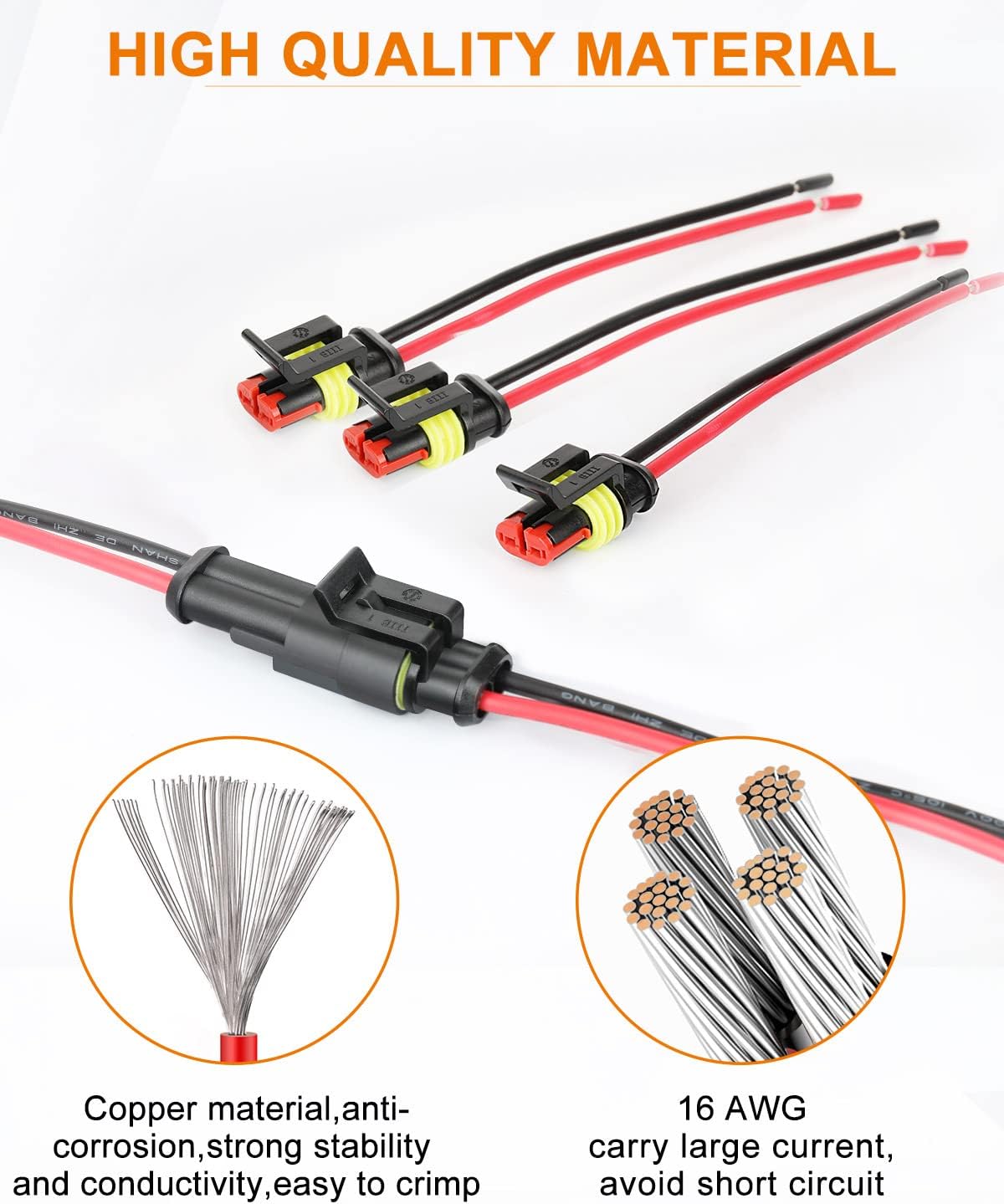 NAOEVO 2 Pin Connector Waterproof, 16 AWG 2 Wire Connectors, Automotive Electrical Male and Female Plug with Heat Shrink Tubing for Car Truck Boat Wire Connection, 6 Kits