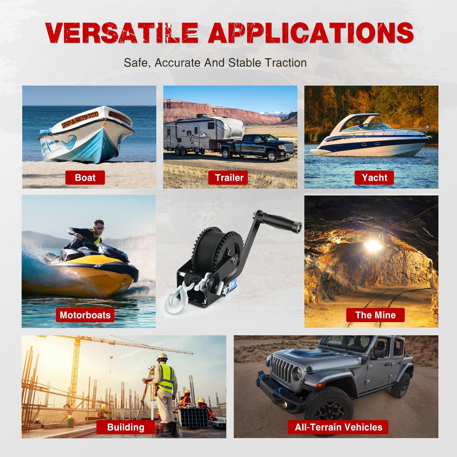 AC-DK 1600lbs Heavy Duty Boat Trailer Winch with 26FT Strap, 2-Way Ratchet & 4:1 Gear Trailer Winch, Portable Hand Crank Winch for Boat, Truck, Trailer, RV, ATV, Jet Ski