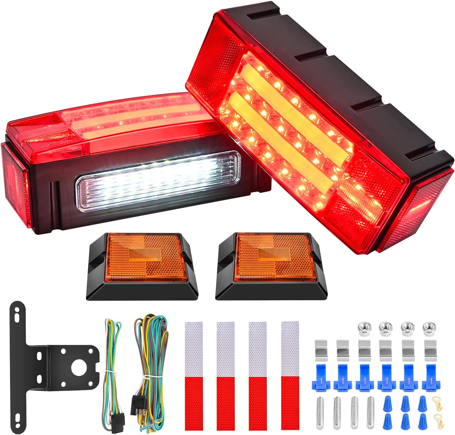 Nilight TL-20 2PCS Submersible Kit Low Profile Rectangular LED Stop Tail Turn Signal Side Marker Light on 12V RV Pickup Trucks Marine Boats Trailers