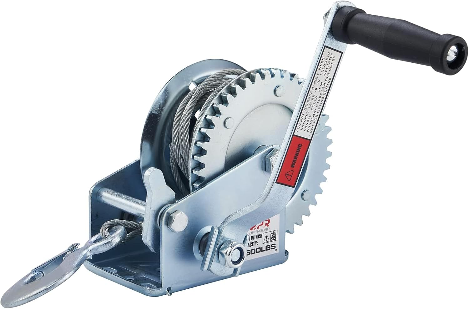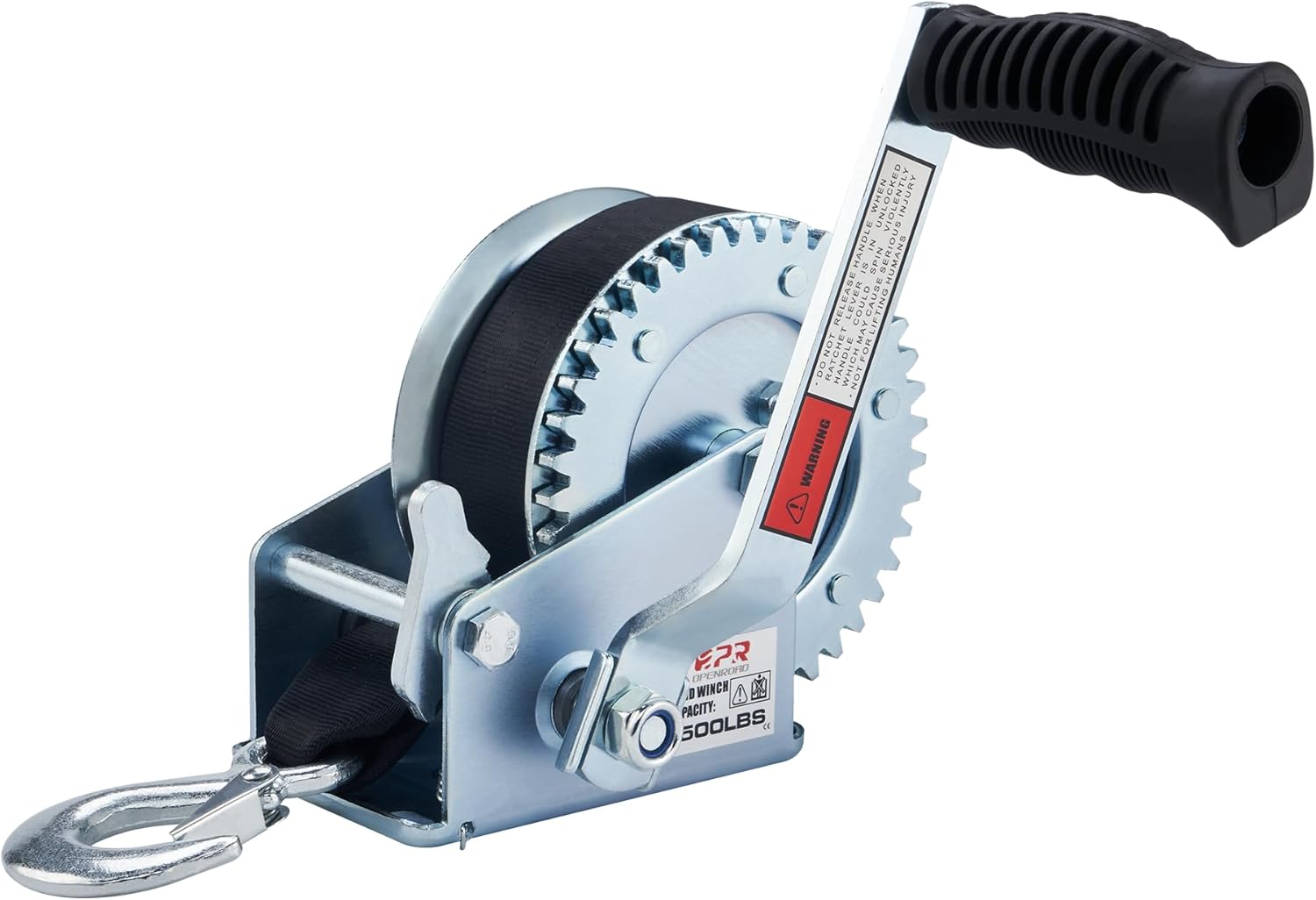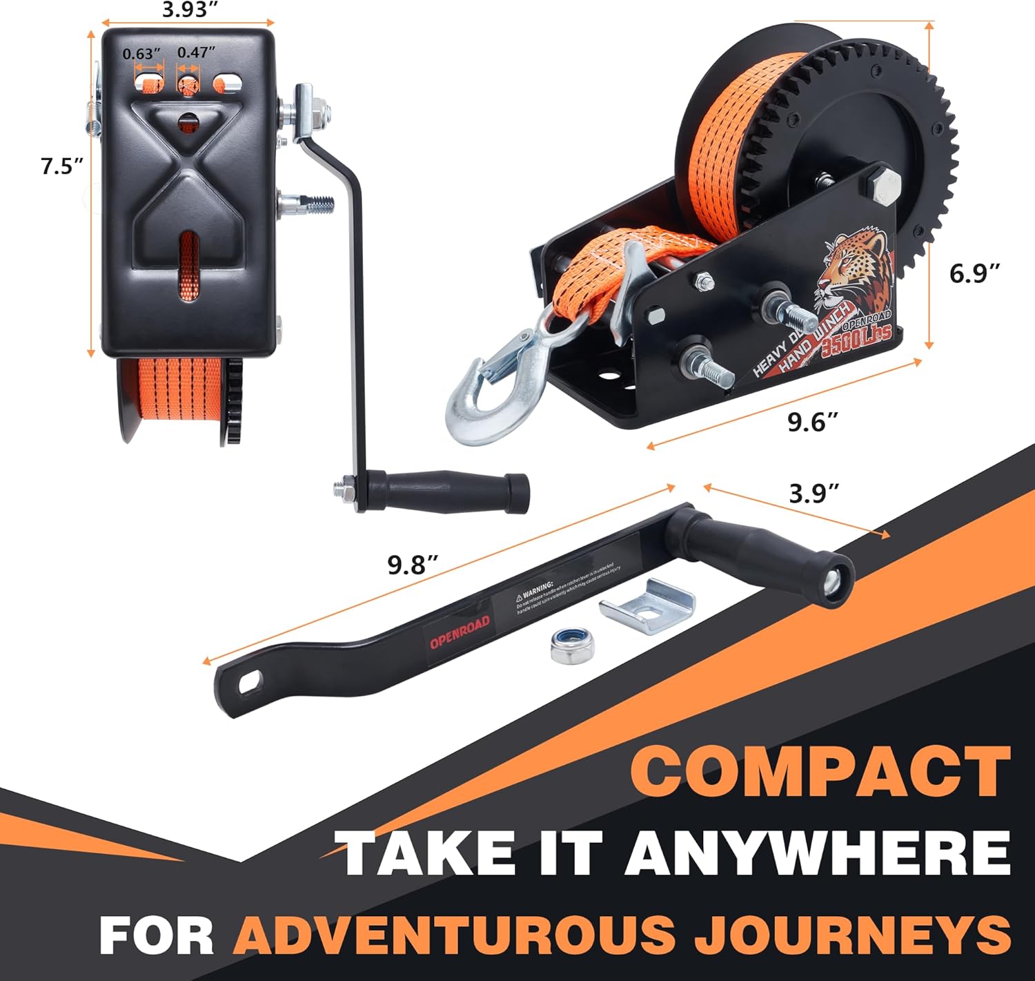 OPENROAD 3500LB Boat Trailer Winch - Heavy Duty Hand Winch with 32 FT Orange Strap, 2-Way Ratchet With 4:1/8:1 Gear - Ideal for Boat, Truck, Trailer, RV, ATV and Jet Ski - Includes Installation Screws