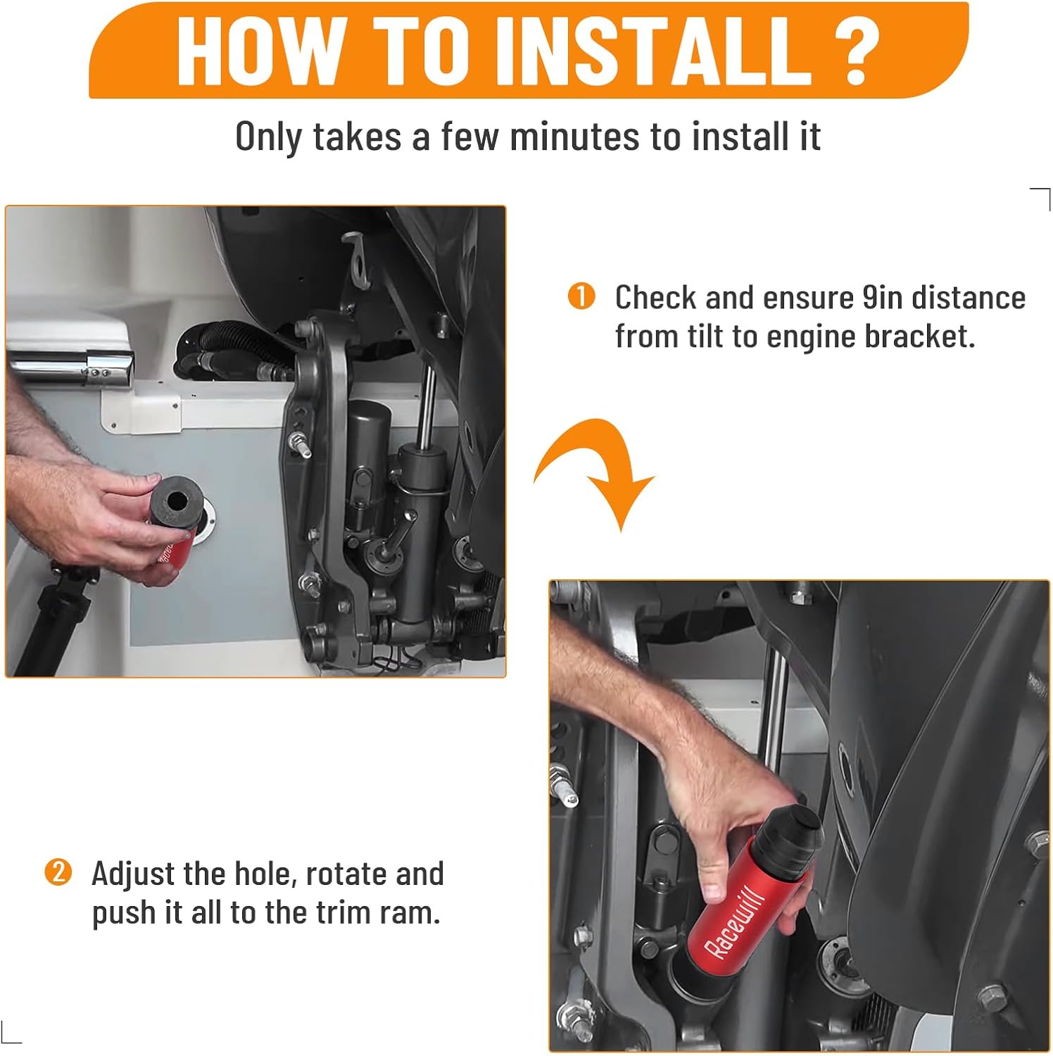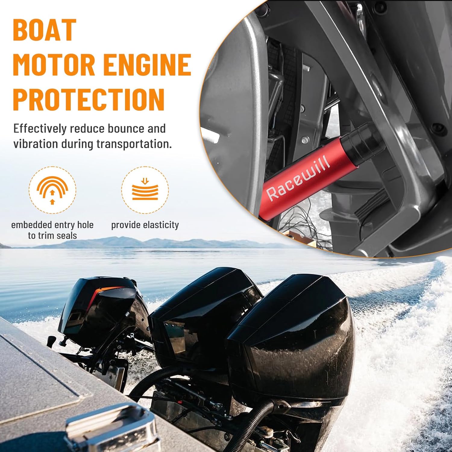 Racewill 2PCS Boat Transom Saver, Outboard Wedge Motor Support, Boat Motor Engine Support, Compatible with 3-Ram Hydraulic Trim/Tilt Systems for Outboard Motor, Boats, Pontoons and Canoes