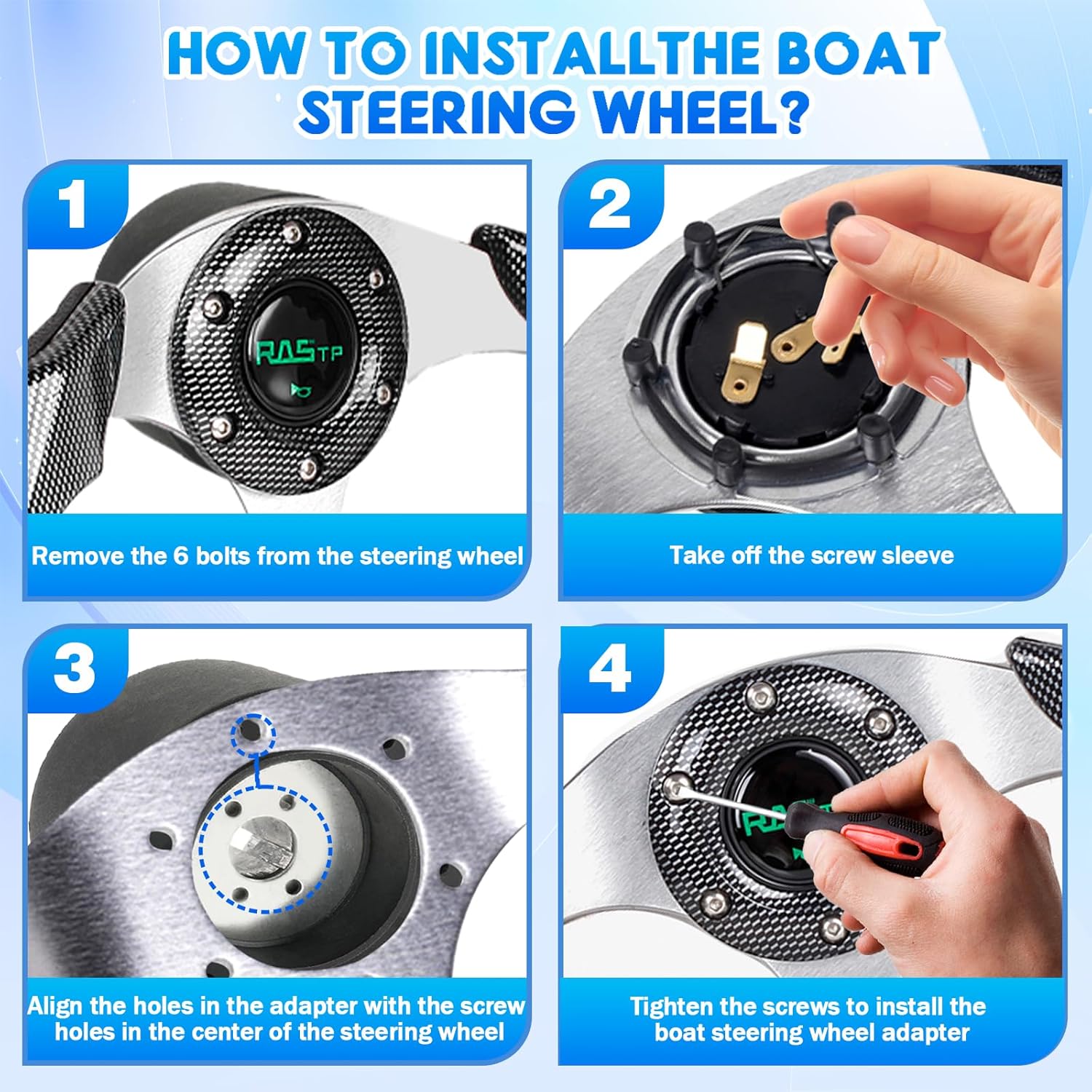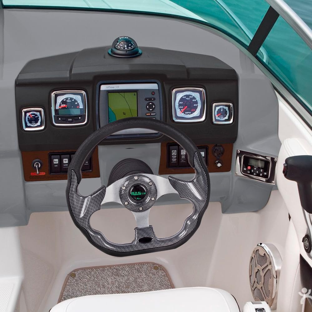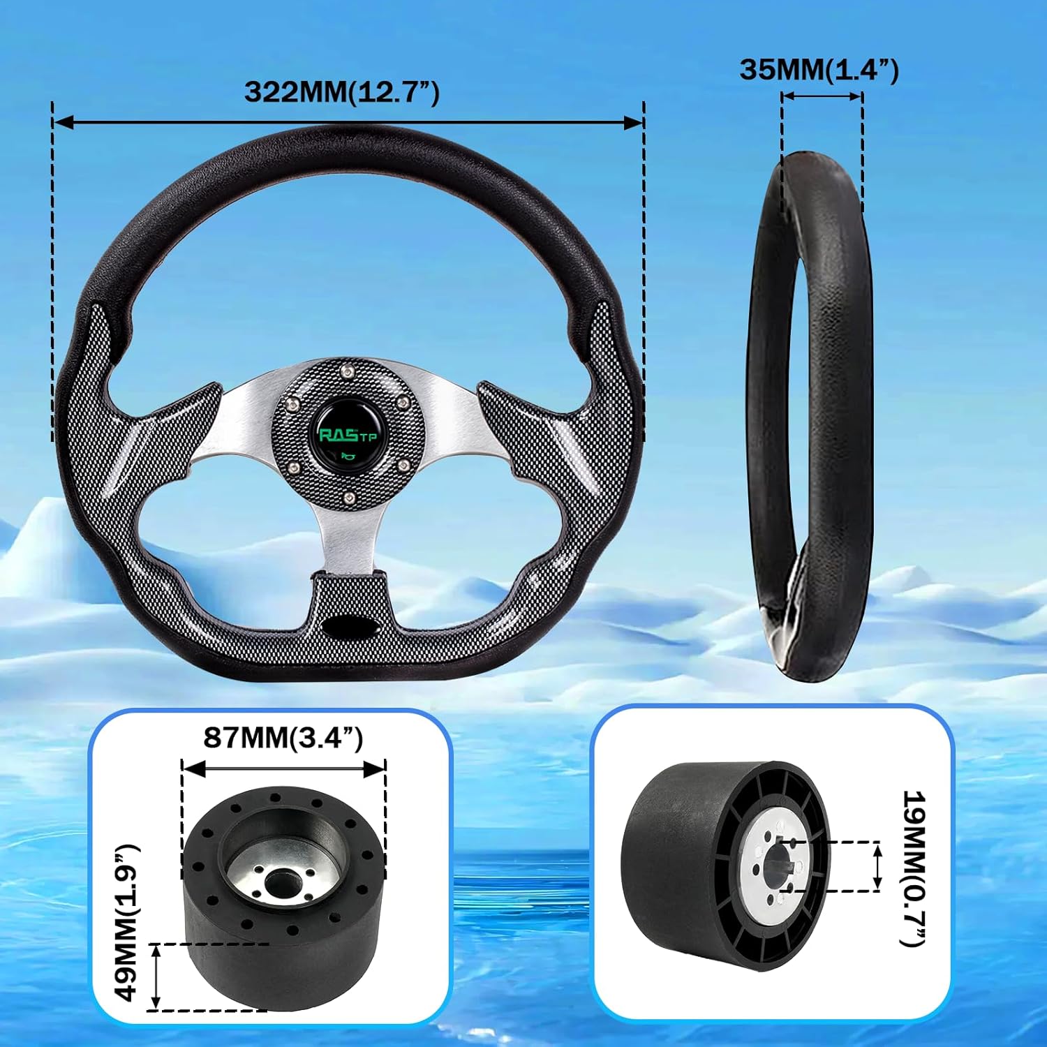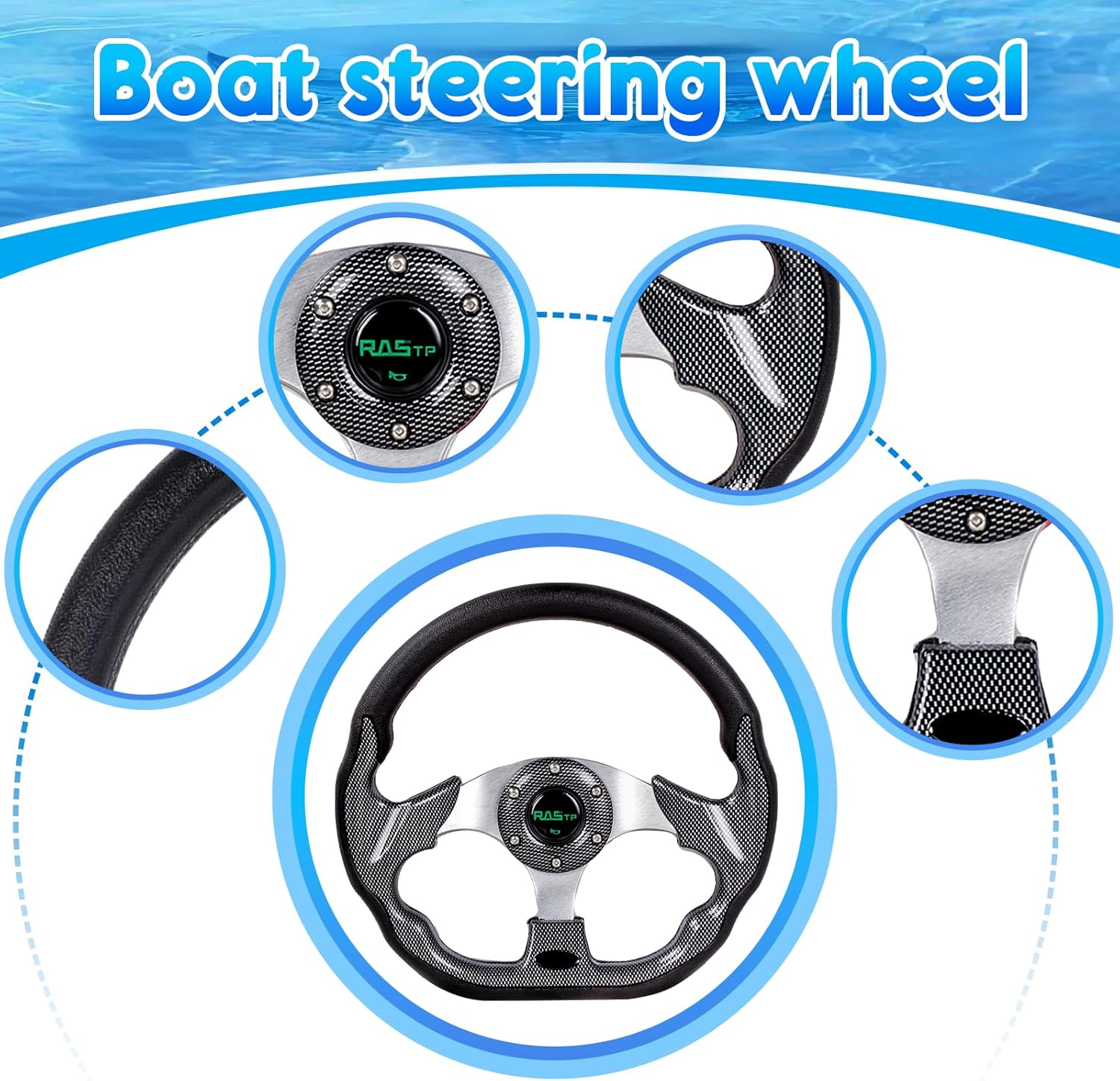 RASTP 12.6 Inch Boat Steering Wheel with 3/4u201C Axle Marine Steering Wheel Adapter for Most Marine boats,Vessels,Yachts,Pontoons Boat(Pane)