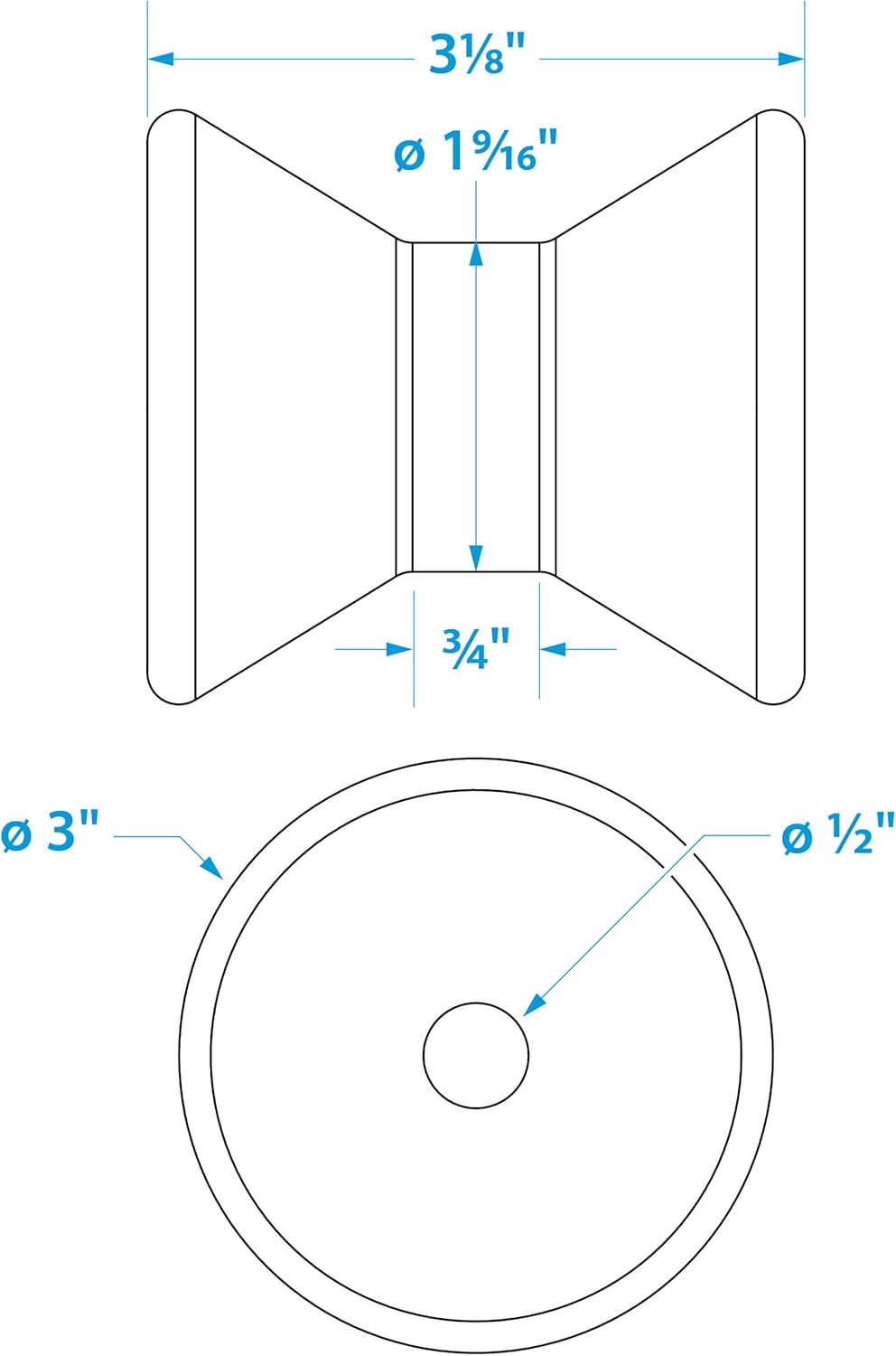 Seachoice Molded Bow Roller, Black, Boat Trailer, Various Sizes