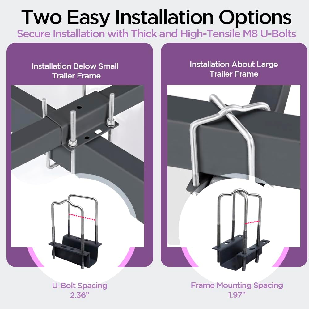 Skylarion Boat Trailer Bunk Brackets u2014 8" Heavy-Duty Galvanized Swivel-Top Kit, 4-Pack w/Hardware, Fits 1.5"x3"/2"x3"/3"x3"