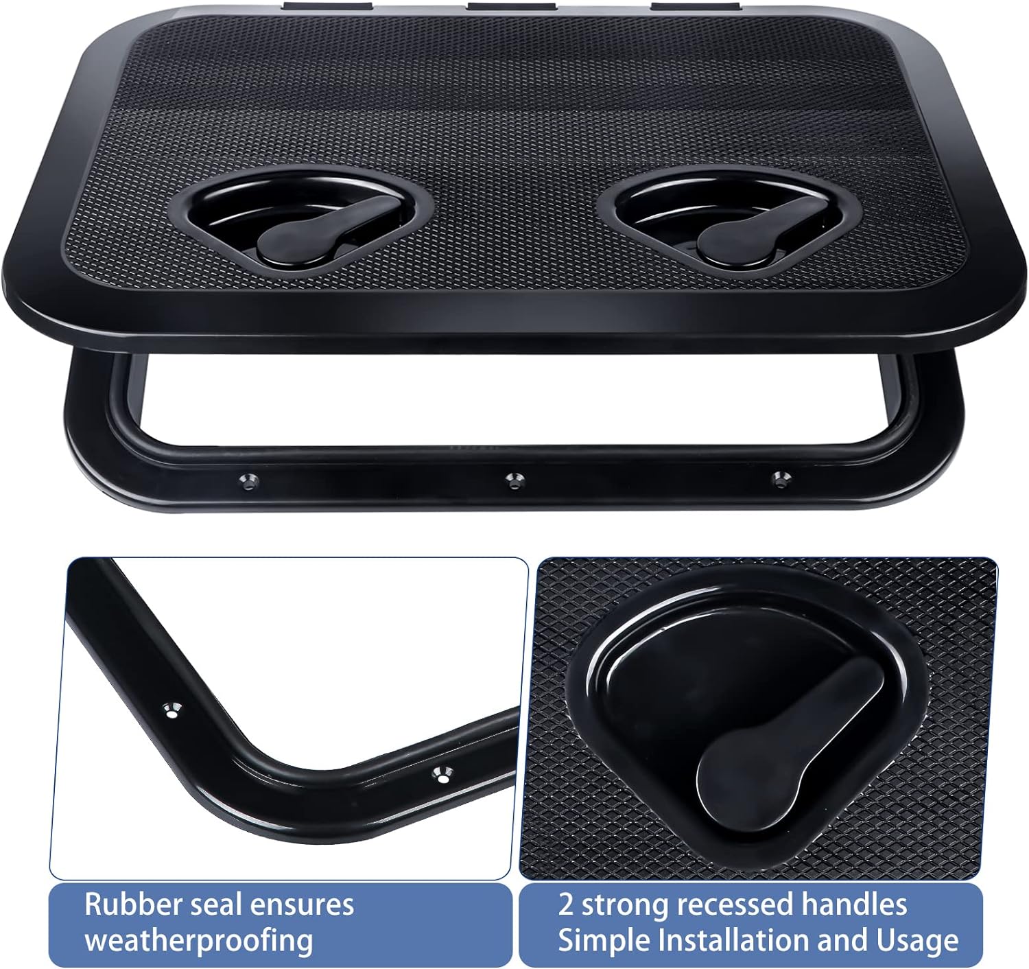 smartmarine Marine Deck Access Hatch 17.3“×12.4 Black Rectangle Boat Hatch & Lid,Boat Deck Hatch Lids