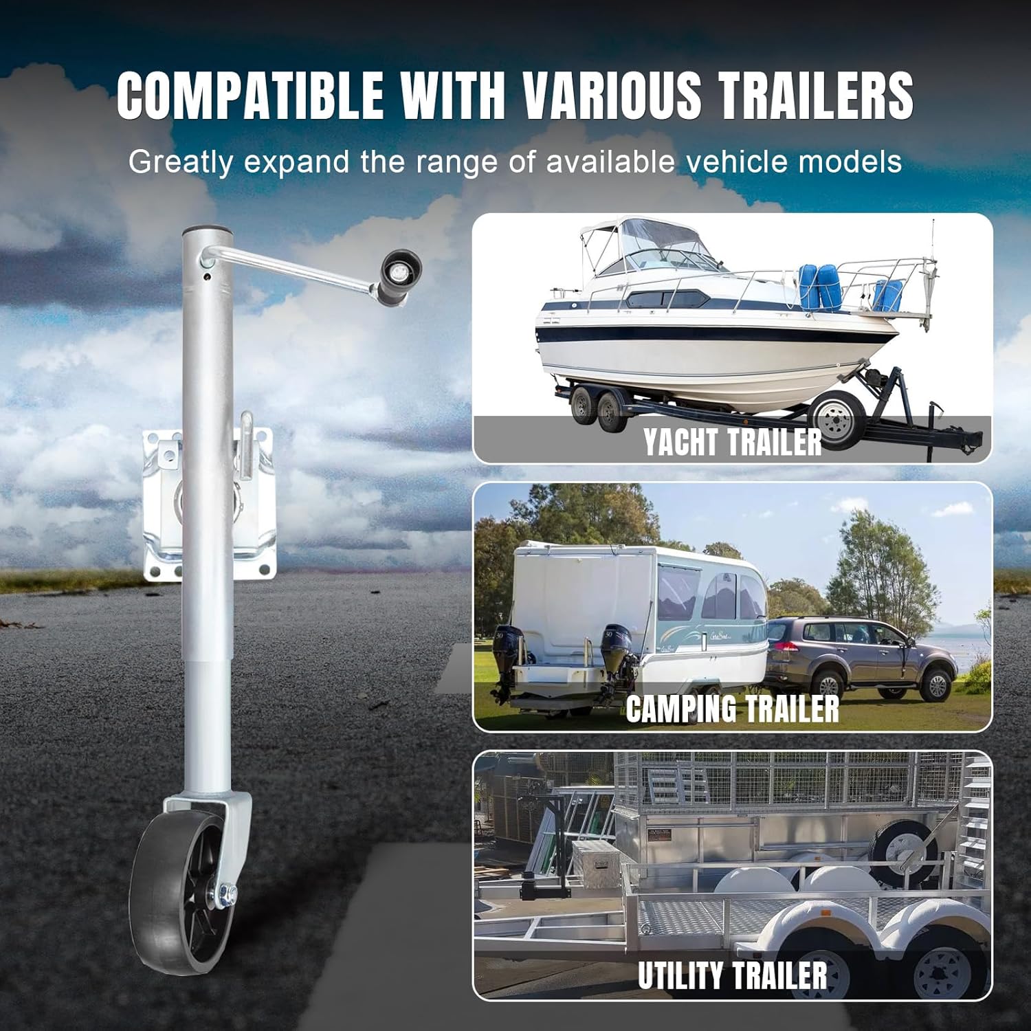 Torin 1000 lbs Trailer Jack with Wheel, Heavy Duty Swivel Boat Trailer Jack Single Whee, 10" Lift, Bolt-on Trailer Tongue Jack for RV Boat ATR39001B, Silver