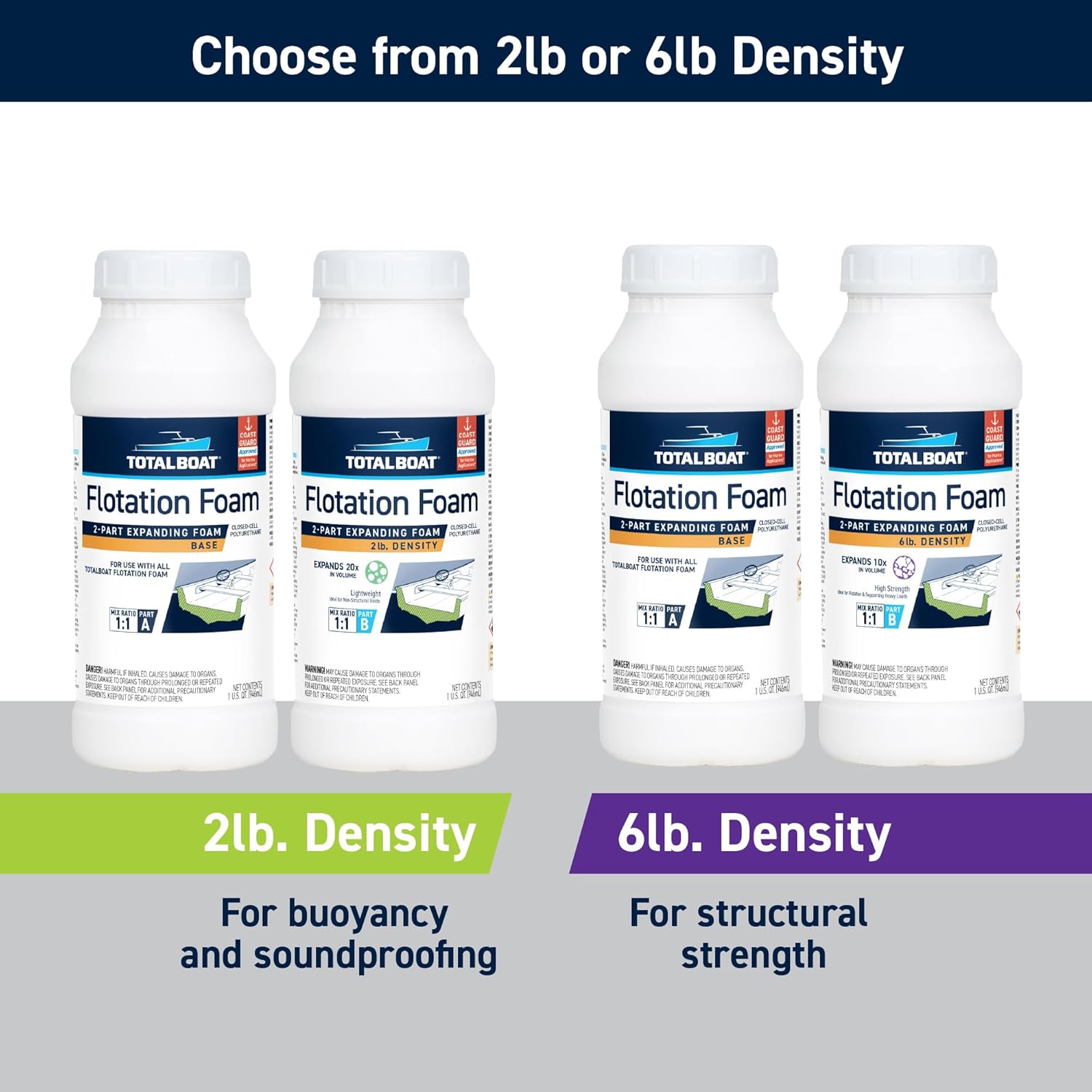 TotalBoat 2 Lb Density Expanding Foam Kit, 2 Part Closed Cell Pourable Polyurethane for Boat Flotation, Insulation, Reinforcement and Void Filling (2 Gallon Kit)