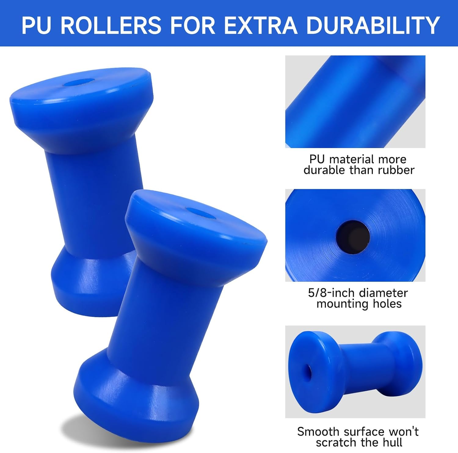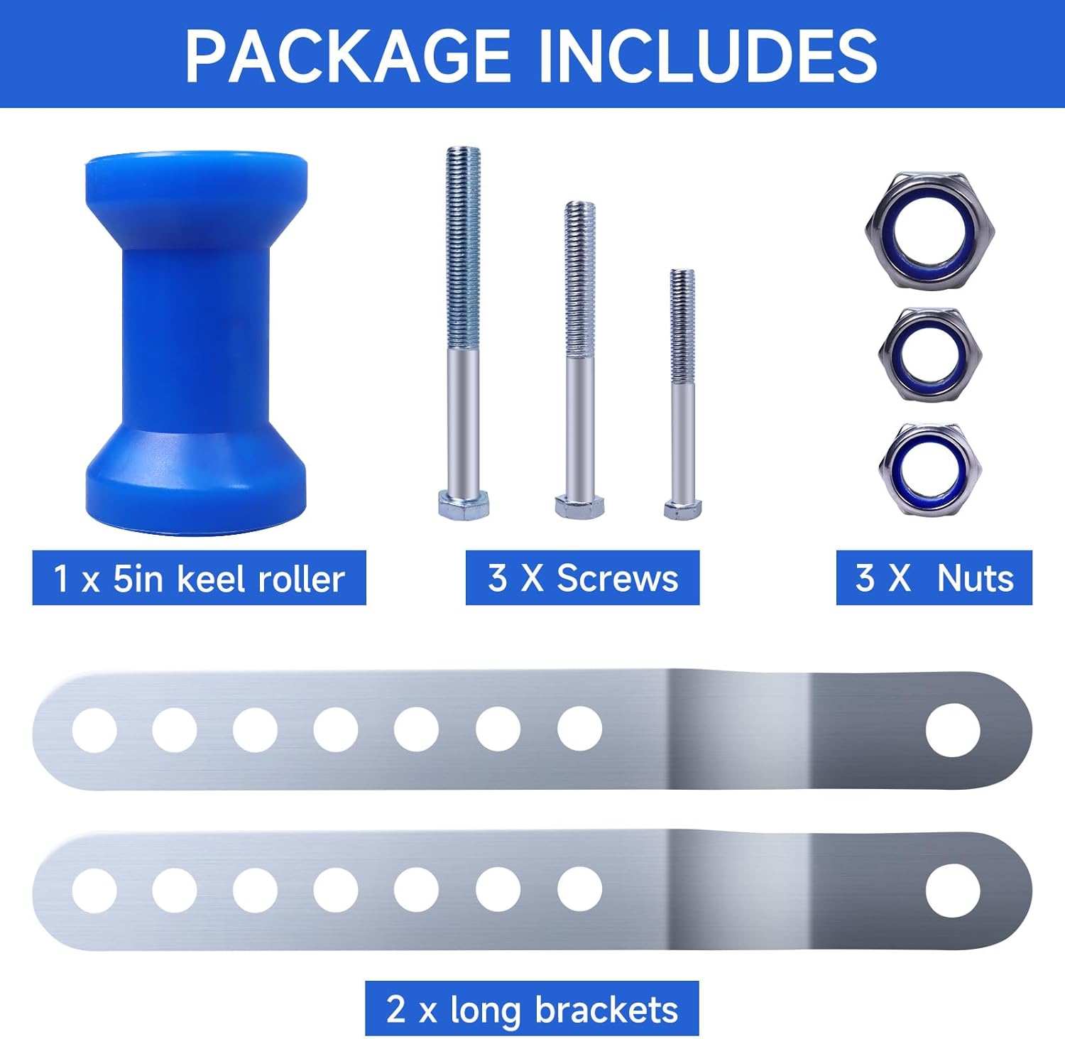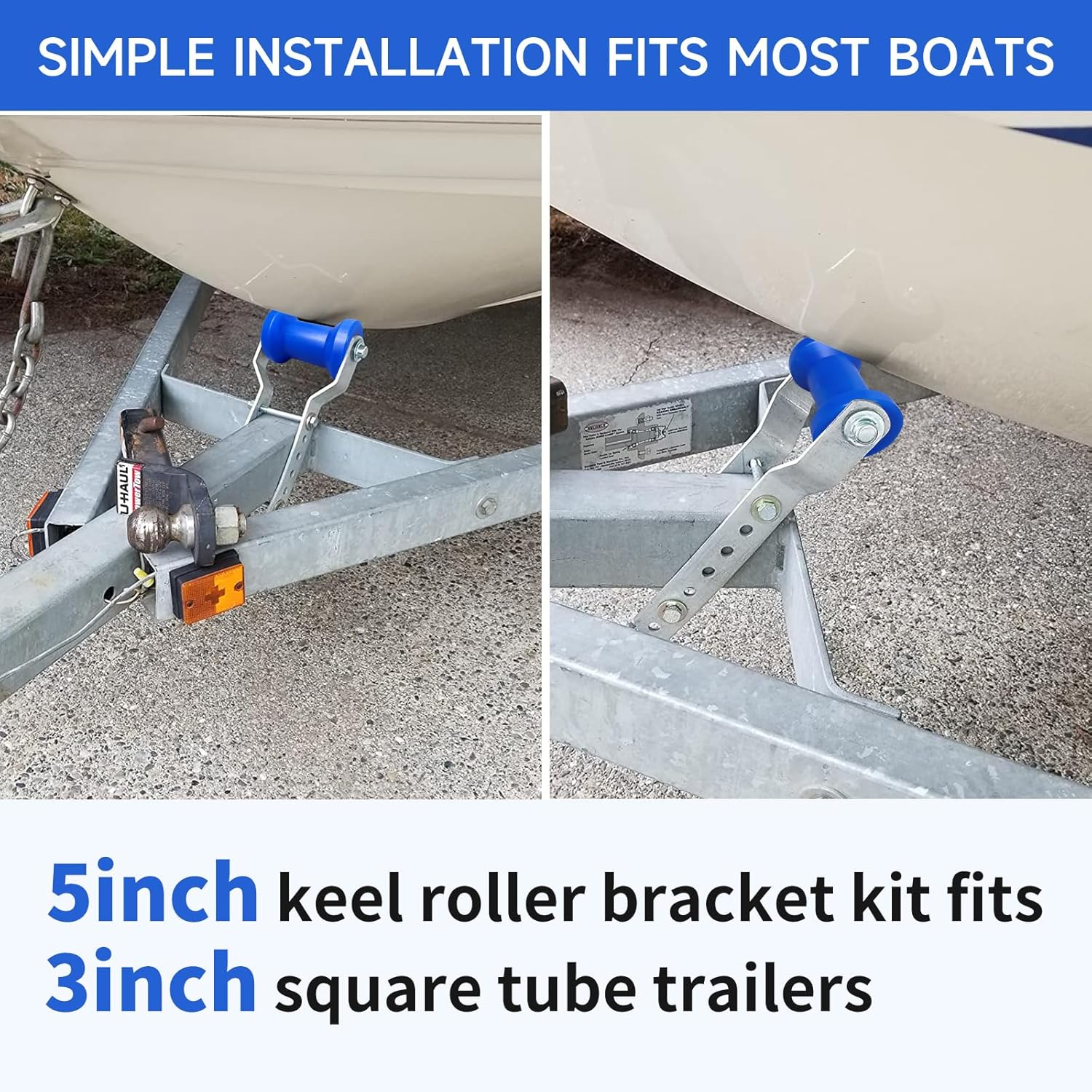 Updated 5" Boat Trailer Rollers with Brackets Blue Adjustable Keel Roller Assembly Galvanized Steel Fit 3" Tongue