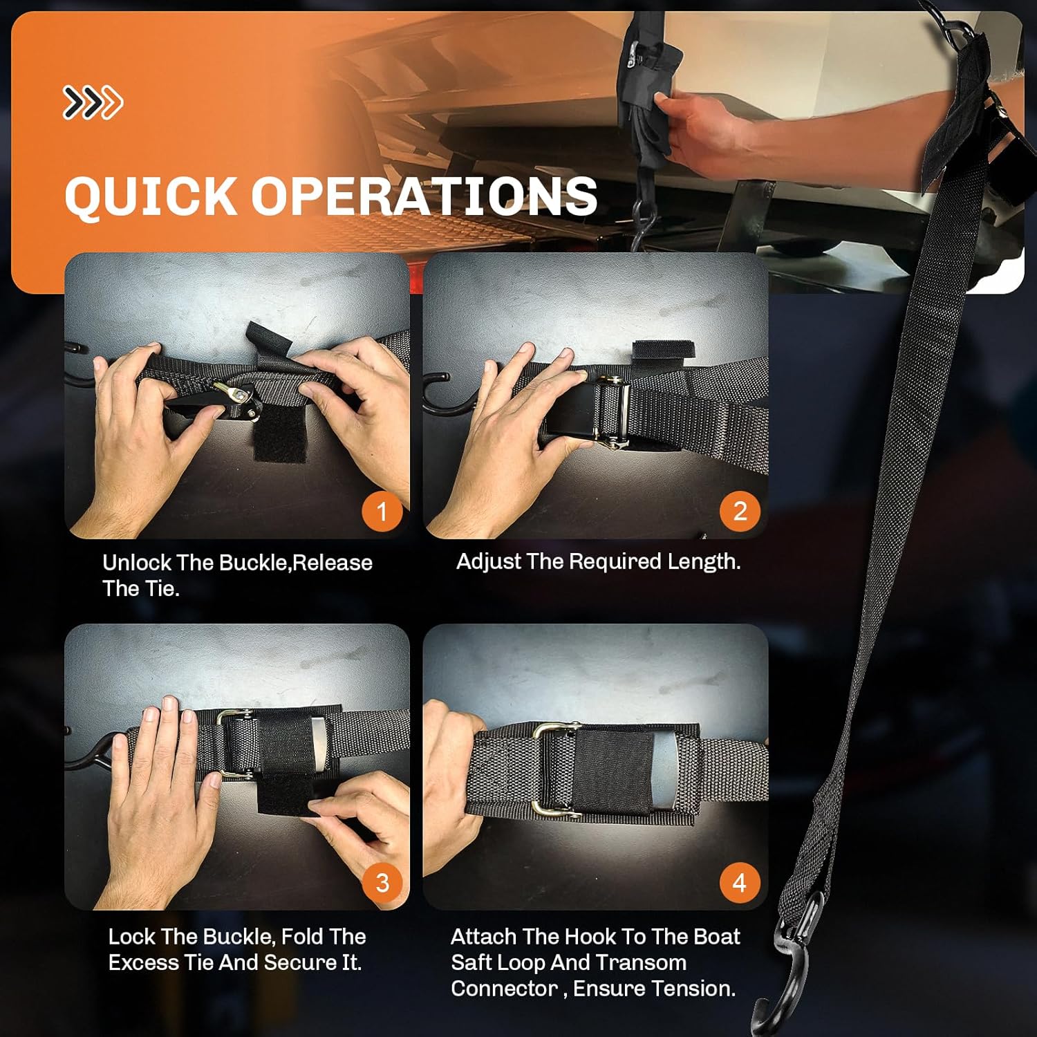 WELLUCK Boat Trailer Transom Tie Downs Straps 1200 LBS, 2" x 4' Adjustable Boat Buckle Transom Tie Downs to Trailer, Marine, Jet ski, Pontoon, with Quick Release Buckle & Anti-Scratch Hooks
