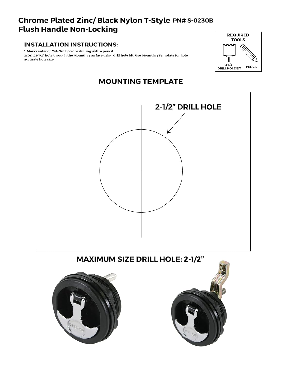Whitecap S-0230BC T-Handle Latch - Non-Locking , Black